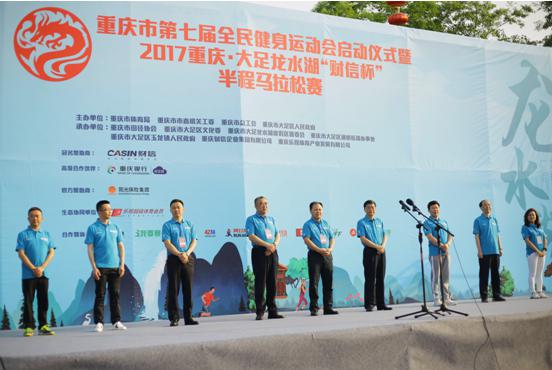 | 2017年4月23日,由重慶市體育局、重慶市大足區(qū)人民政府主辦,重慶財(cái)信集團(tuán)、重慶樂視體育等共同承辦的重慶市第七屆全民健身運(yùn)動(dòng)會(huì)啟動(dòng)儀式暨2017重慶?大足龍水湖“財(cái)信杯”半程馬拉松賽,在靈山秀水的龍水湖景區(qū)拉開帷幕。 |