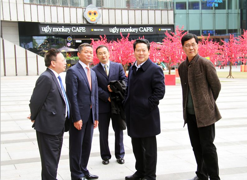 盧董事長(zhǎng)(左二)與許志勛副市長(zhǎng)(右二)參觀財(cái)信廣場(chǎng) |