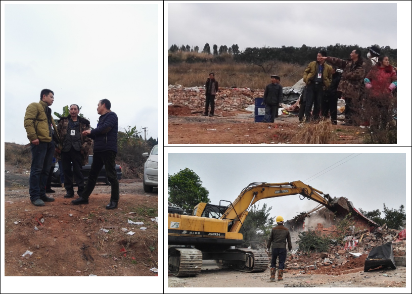 財信渝成總經(jīng)理李靖波、副總吳爽,茶店鎮(zhèn)副鎮(zhèn)長牛忠江、統(tǒng)籌部主任湯明宇等親監(jiān)現(xiàn)場監(jiān)督工作。施工現(xiàn)場,李總關(guān)切的對拆遷部現(xiàn)場員工說,如此嚴(yán)寒的天氣,你們?nèi)匀灰恢眻允卦谏缴媳O(jiān)督施工的進(jìn)度,辛苦了,拆遷部負(fù)責(zé)人付強(qiáng)說:只要工期能按時完成,我們的付出就是有價值的。樸實的話語體現(xiàn)了的拆遷部的心聲,也體現(xiàn)了作為四川財信每一個員工的工作態(tài)度。