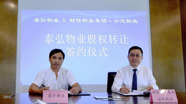 8月31日下午,在重慶市江北嘴的財信集團總部,財信物業(yè)旗下深圳公元物業(yè)與寧鄉(xiāng)桐廬酒店管理有限公司,就湖南泰弘物業(yè)管理有限公司股權(quán)轉(zhuǎn)讓簽署了合作協(xié)議。這標志著財信物業(yè)正式進入湖南長沙市場,其擴張步伐又邁出了堅實的一步。