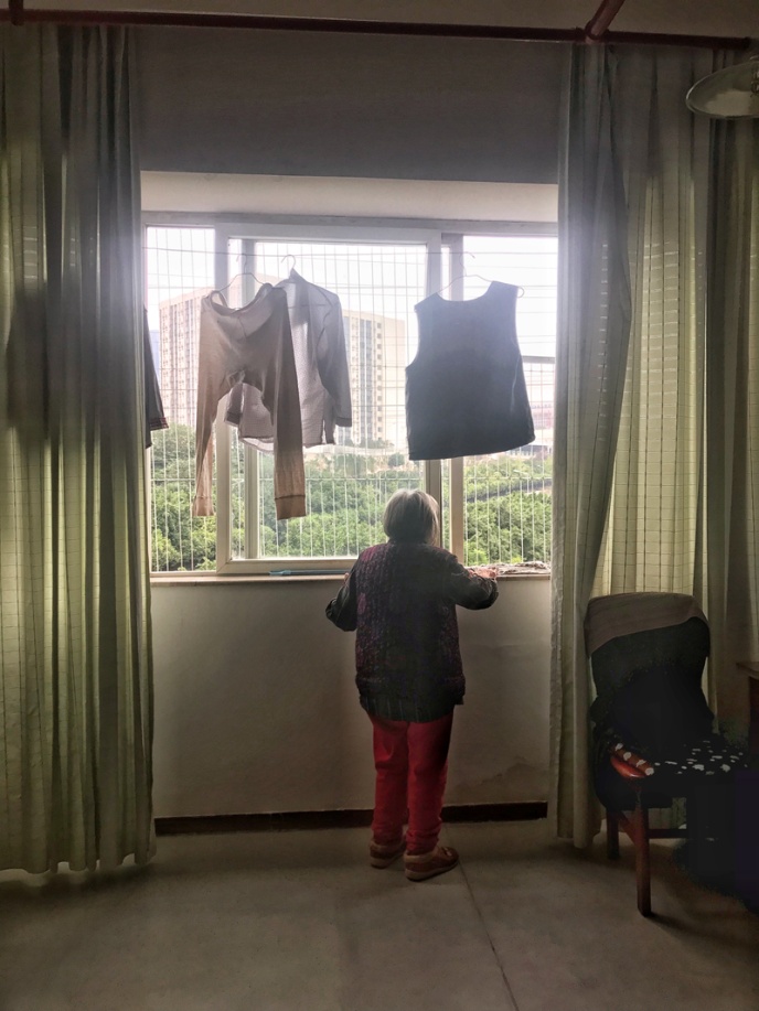 92歲的李正碧老人獨自住在北部新區(qū)福利院。她是三無老人,由政府負責贍養(yǎng)。老人不大外出,最多踱步在10平米不到的房間,而平時最大的樂趣就是看著窗外。老人耳背,回應我們的探望只是不停笑著說,“好,好。謝謝你們,謝謝……”