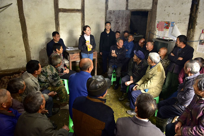 借著頂山村社員大會的機會,財信集團黨辦副主任賈雯雯為村里老人講解黃手環(huán)的用途。72歲的劉先榮老人自告奮勇來當志愿者試戴。戴上手環(huán),他不住地說:“這個東西,好!謝謝財信!”